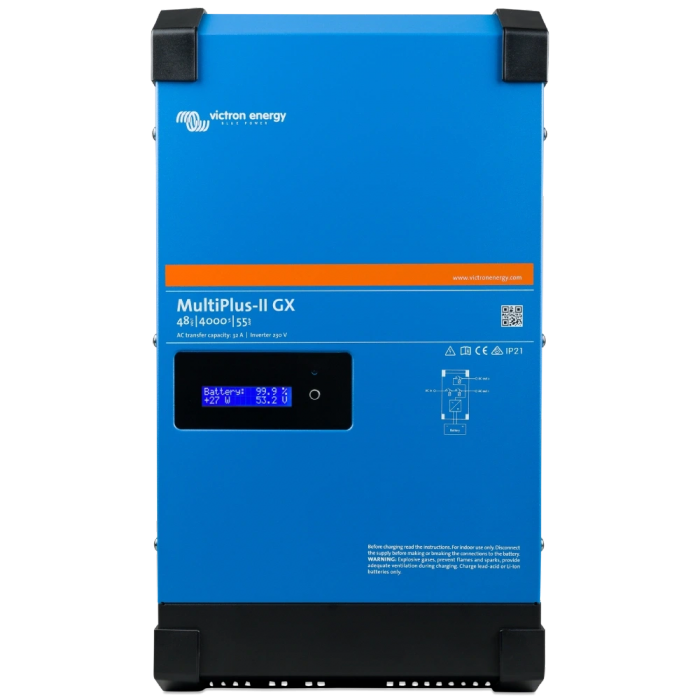 ● Максимальний вхід змінного струму 55 А;● Діапазон вхідної напруги постійного струму 38–60 В;● Вихід 230 В змінного струму;● Вихідна потужність при 25°C 4000 Вт;● Вхід змінного струму 187–265 В;● Допоміжний вихід 32 А;● Діапазон робочих температур від -40 до +65 ° С;● 590 x 275 x 149 мм;● 21.4 кгНові моделі: більше потужності на кг і на дм3, а також краща робота за високих температурі