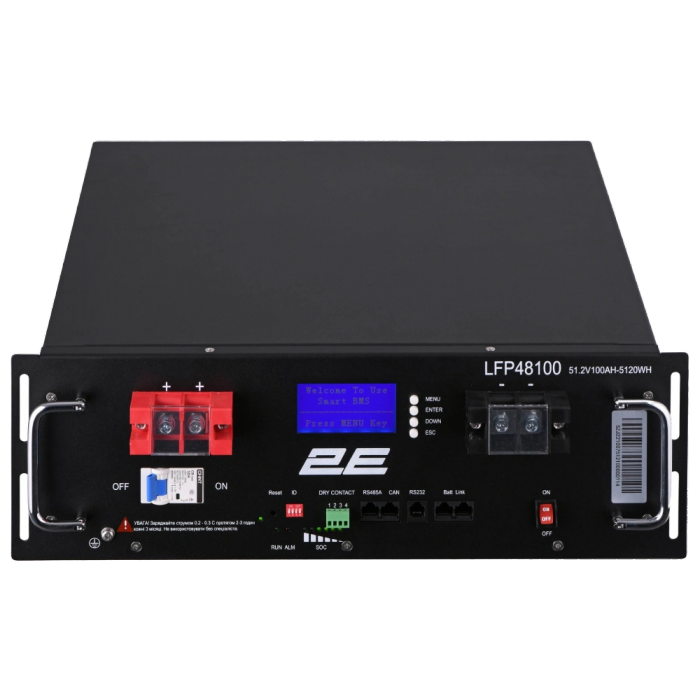 ● Тип акумулятора: LiFePo4 – літій-залізо-фосфат;● Вихідна напруга: 51,2 В;● Місткість: 100 А•г;● Максимальний струм заряду: 100 А;● Захист: Перезаряд, перерозряд, перегрів, коротке замикання;● Розміри: 155 x 442 x 480 мм;● Вага: 47 кг