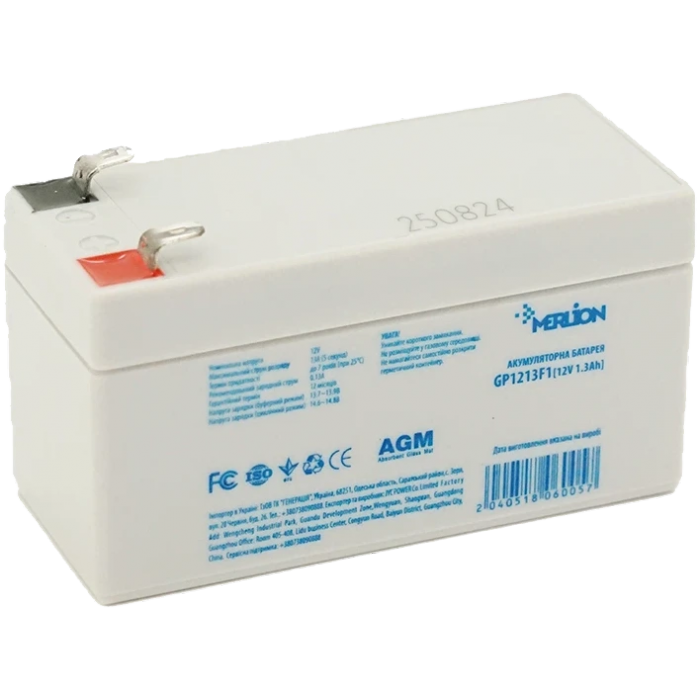 ● Кількість елементів: 6;● Напруга: 12 В;● Номінальна ємність: 1.3 A•год. при 20 годинному розряді до 1,75 В на елемент при 25 °C;● Внутрішній опір 95 мОм;● Тип клем: F1;● Максимальний струм розряду: 13 А (5 секунд);● Максимальний зарядний струм: 0,36 A