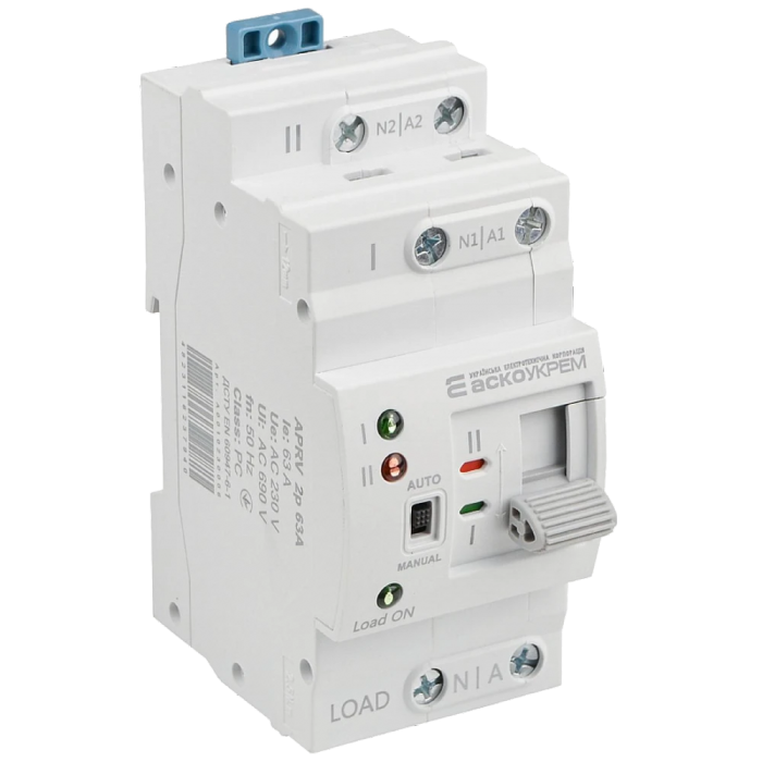 ● Тип монтажу: на DIN-рейку 35 мм;● Клас: РС ;● Час (автоматичного) перемикання, мс: 50;● Номінальний робочий струм Ie, A: 63;● Номінальна напруга ізоляції Ui, В: АС 690;● Номінальна робоча напруга Ue, В: AC 230