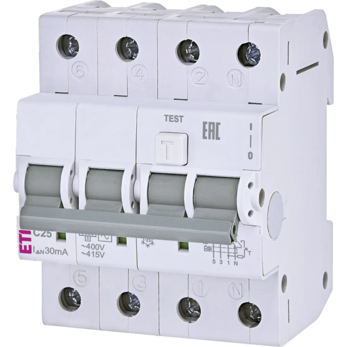 ● Номінальний струм (A): 25A;● Тип: AC;● Номінальний струм витоку (A): 0.03A;● Характеристика спрацювання: C;● Кількість полюсів: 3+N;● Вимикаюча здатність (кА): 6kA;● Номінальна частота (Hz): 50Hz/60Hz;● Номінальний перетин: 1mm²-25mm²;● Стандарт: IEC/EN 61009