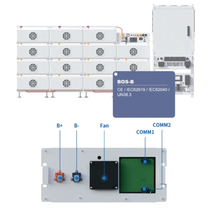 ● Вихідна напруга: 51,2 В;● Місткість: 314 А•г;● Максимальний струм заряду/розряду: 180 А;● Розміри: 795,9 × 526 × 274,2 мм;● Вага: 123 кг