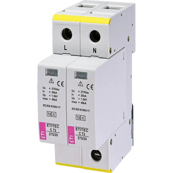 ● Напруга довготривалої роботи Uc, (АС): 275V In (8/20), (kA): 20kA;● Рівень захисту по напрузі Up, (kV): 1.5kV;● Струм витоку: ТАК;● Технологія: MOV;● Призначення: SPD;● Тип мережі: TN-S;● Кількість полюсів: 2;● Глибина корпусу (mm): 66mm