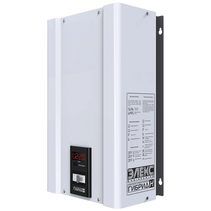 ● Потужність 5.5 кВт;● Робочий струм 25 A;● Час реакції 100 мс;● Тип ключа релейно-симісторний;● Тип підключення клемний;● Байпас електронний;● Кількість ступенів стабілізації 9;● Діапазон роботи 110-325 В;● Діапазон стабілізації 135-315 В;● Точність стабілізації 230±7.5%;● Вага 21 кг;● Габарити 46 × 27.5 × 17.8 см