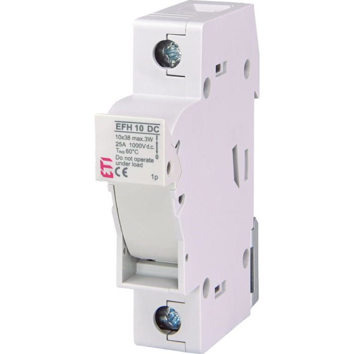 ● Типоразмер: 10x38;● Количество полюсов: 1;● Способ монтажа: TH 35;● Категория применения: DC-20B;● Номинальный ток (A): 25A;● Номинальное напряжение DC (В): 1000V;● Совместимость: CH gPV предохранители;● Стандарт: IEC 60947-1,IEC 60947-3,UL 4248-1,UL 4248-19