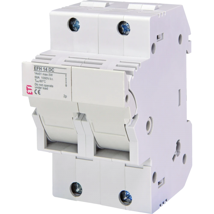● Типоразмер: 14x51;● Количество полюсов: 2;● Способ монтажа: TH 35;● Категория применения: DC-20B;● Номинальный ток (A): 50A;● Номинальное напряжение DC (В): 1000V;● Совместимость: CH gPV предохранители;● Стандарт: IEC 60947-1,IEC 60947-3,UL 4248-1,UL 4248-19