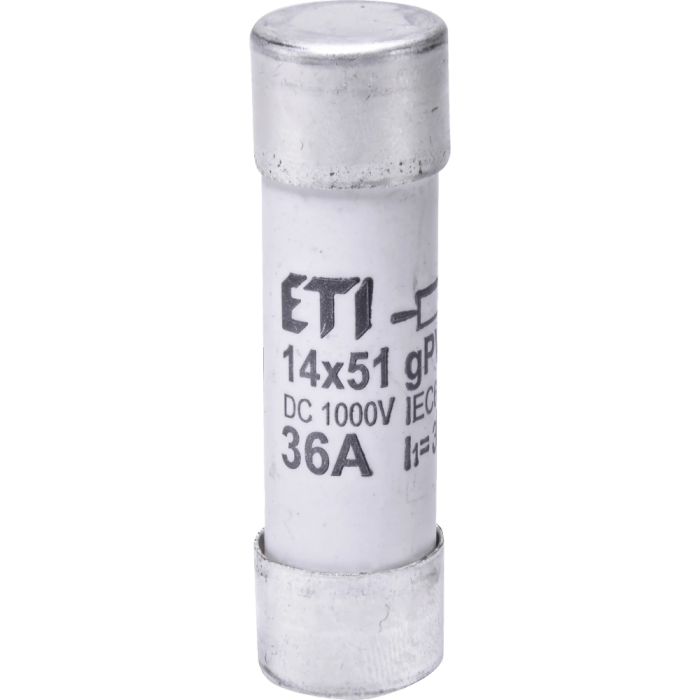 ● Тип: CH;● Типоразмер: 14x51;● Номинальный ток (A): 36A ;● Номинальное напряжение AC (В): 1000V;● Характеристика: gPV;● Отключающая способность DC (кA): 10kA;● Pd (W): 5.6W;● Стандарт: IEC 60269-6