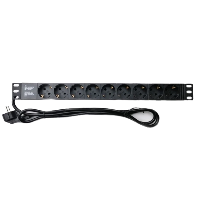 ● Конструкція 19";● Тип розетки Schuko;● Кількість розеток 9;● Довжина кабеля 1.8м;● Висота, U 1;● Без вимикача;● Матеріал алюміній;● Ширина 485 мм;● Глибина 60 мм