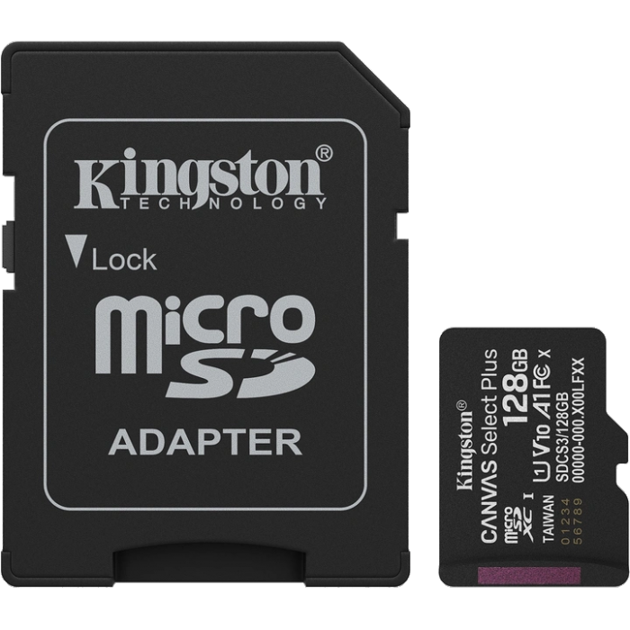 ● Об'єм пам'яті: 128 ГБ;● Швидкість читання: до 10 до 150 МБ/с;● Тип картки пам'яті: microSDXC;● Клас карти: UHS-I (U1);● Перехідник: SD