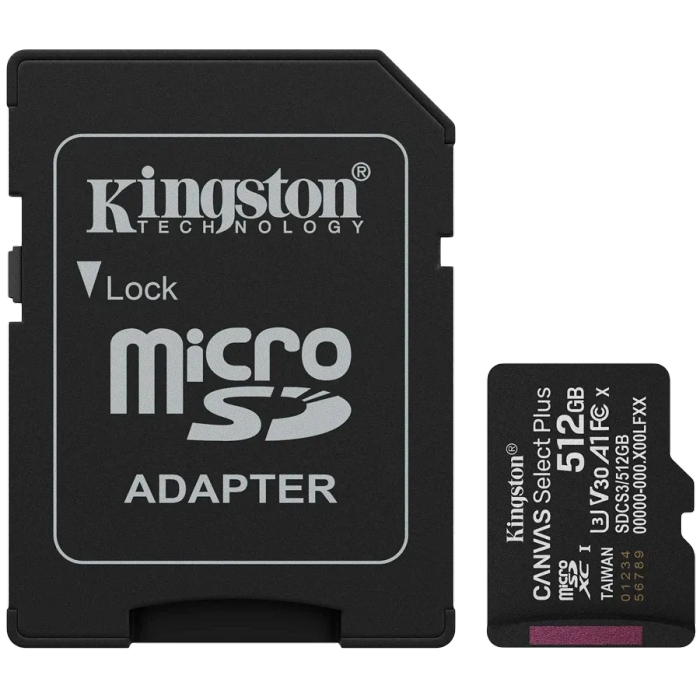● Технологія пам'яті NAND Flash;● Форм-фактор пам'яті Micro SDXC;● Ємність пристрою пам'яті 512 ГБ;● Кількість модулів пам'яті 1;● Швидкість передачі даних при зчитуванні з Flash-носія 150 МБ/с;● Рейтинг швидкості Video Speed Class V30, Class 10, UHS-I U3, Application Performance Class A1
