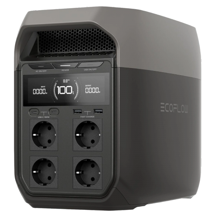 ● Ємність 1024 Вт●год;● Потужність 1800 Вт;● Форма вихідного сигналу: чиста синусоїда;● Розетка AC 230В (4х);● Час заряджання станції від мережі: 56 хв (1500 Вт); від сонячної панелі (500 Вт): до 130 хв. ; від автомобільного акумулятора у поєднанні із EcoFlow Alternator Charger: 1,3 год; Від інверторного генератора: близько1 год;● Максимальна потужність пристроїв, що підтримується X-Boost - 2400 Вт USB-A - 2 (Швидка зарядка) - 18 Вт макс. USB-C – 2 – 100 Вт макс. Перемикання в режим ДБЖ: <10 мс;● Цикли заряджання 4000, Потужність автомобільної розетки (прикурювача), Вт 126.0, Потужність USB Type-A, Вт 18;● Потужність USB Type-C, Вт 100, Кількість USB Type-C 2, DC 2, USB Type-A 2, USB Type-C 2;● 398×200×284 мм; 12.5 кг
